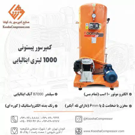 قیمت کمپرسور باد 1000 لیتری بر اساس شرایط بازار در سال 1404 در محدوده 80 الی 90 میلیون تومان است.